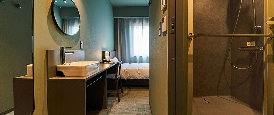朝食無料●駅に合わせた赤いレンガ調造り●ラジウム人工温泉大浴場「旅人の湯」男女